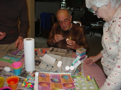 Dad coloring easter eggs, perhaps for the first time in his life!