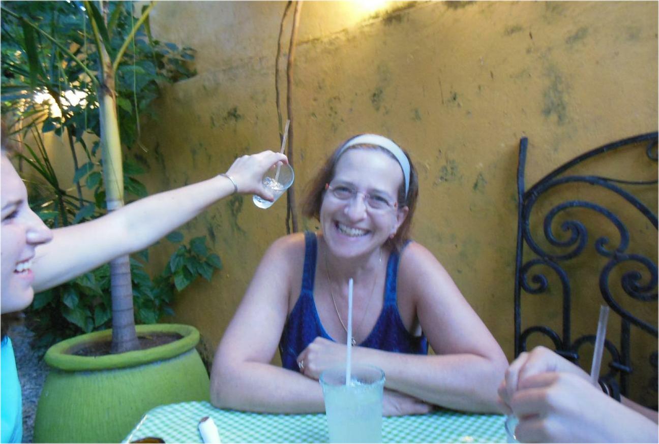 Tahlia re-enacts the full glass of ice-cold lemonade the waiter spilled down Judy's back at the restaurant.