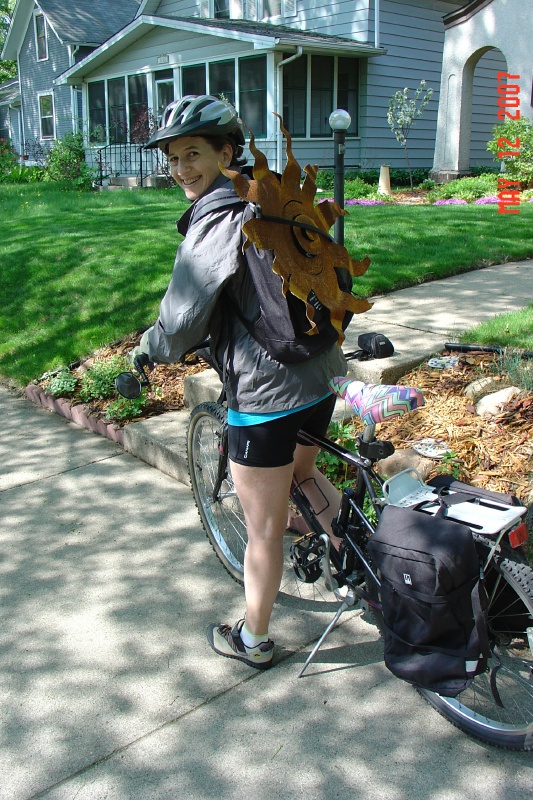 May the sun always be at your back! Judy poses with a new artwork pedalled back from the local farmer's market.